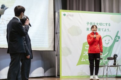 東京都は、子どもの笑顔につながる様々なアクションを展開する「こどもスマイルムーブメント」を推進しています。谷真海はこの推進運動のアンバサダーを務めていて、先日、日野市立日野第二中学校を訪問し、栗山英樹さんと共に特別授業を実施しました(栗山さんはVTR出演)。